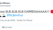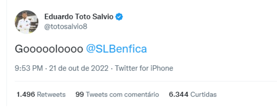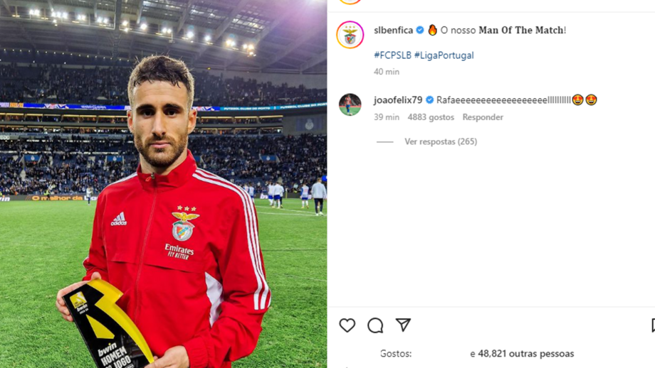 O Benfica bateu o FC Porto no jogo grande da 10ª jornada da Liga Bwin, com um golo solitário de Rafa e houve ex-jogadores das águias que se mostraram atentos ao desenrolar da partida no Estádio do Dragão. Eduardo Salvio foi um dos que festejou o golo do internacional português nas redes sociais, sendo que João Félix também se revelou efusivo face ao tento do avançado e amigo Rafa. Sebastien Corchia também mostrou apoio tal como Artur Moraes, ex-guarda-redes do clube da Luz.