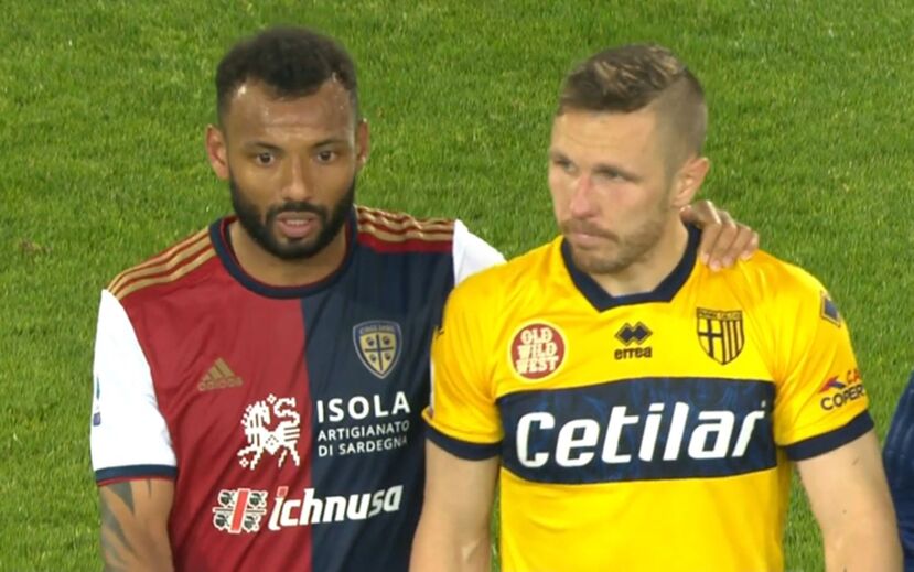 João Pedro Galvão, capitão do Cagliari, confortou Kurtic (Parma) no final do encontro
