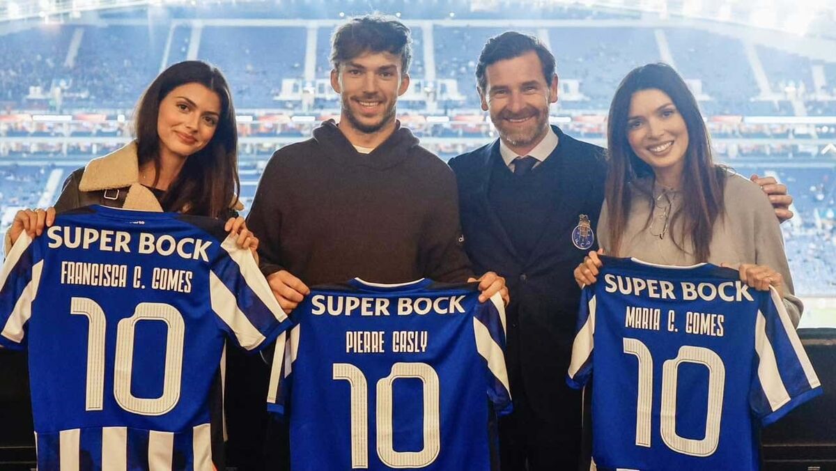Gasly e Kika Cerqueira Gomes assistem ao FC Porto-Midtjylland e recebem camisolas especiais de Villas-Boas