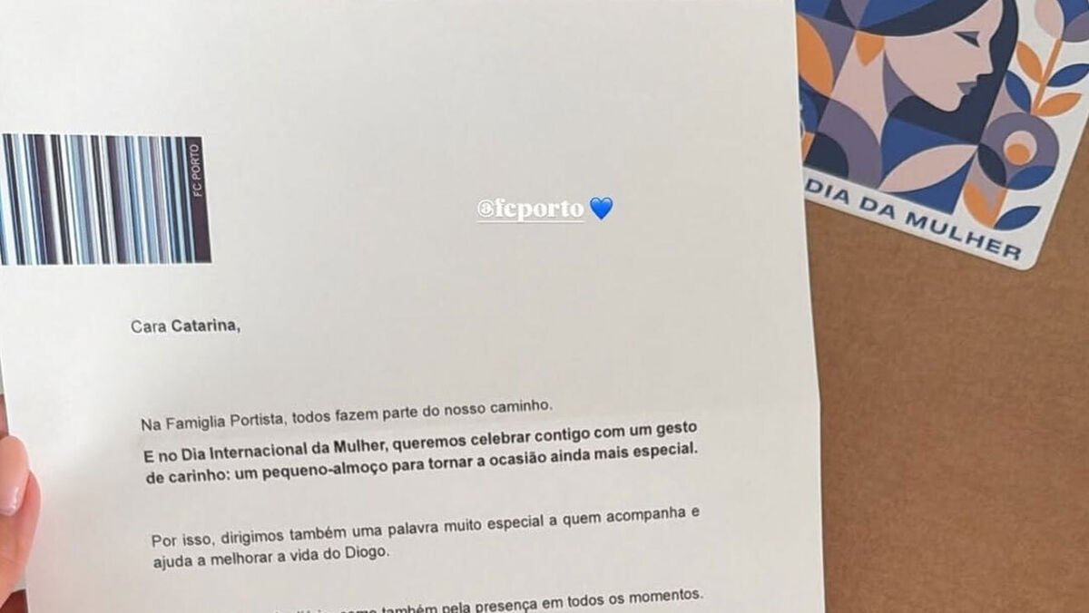 Assinala-se este domingo o Dia Internacional da Mulher e o FC Porto quis assinalar a efeméride oferecendo um pequeno-almoço especial às companheiras dos jogadores. Catarina Machado, mulher de Diogo Costa, e Mariana Sousa Lopes, namorada de Diogo Fernandes, mostraram o 'miminho' dos dragões que chegou com uma carta personalizada da 'famiglia portista' num dia marcado também pelo clássico com o Benfica (às 18H, na Luz).