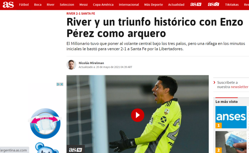 Feito de Enzo Pérez e do River Plate é notícia por todo o Mundo