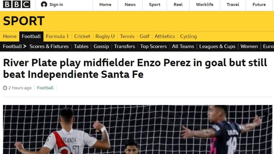 A presença - bem sucedida - de Enzo Pérez na baliza do River Plate, no jogo com o Independiente Santa Fé, foi notícia um pouco por todo o Mundo. O médio calçou as luvas depois de um surto de covid-19 ter deixado a formação argentina com apenas 11 jogadores disponíveis para o encontro da Libertadores e o River ganhou o jogo, por 2-1.