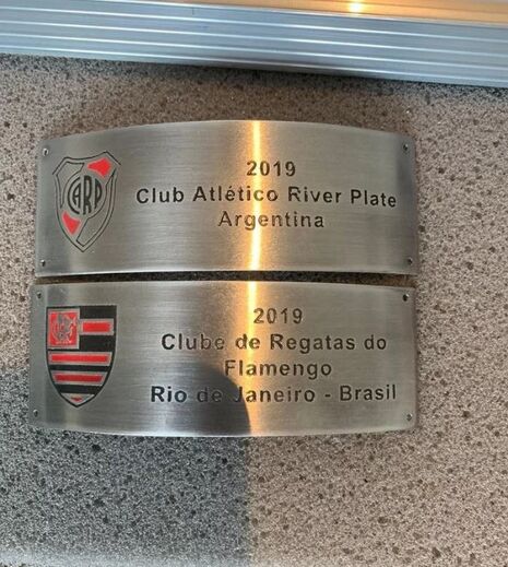 No domingo foram reveladas a placas de campeão da Taça Libertadores feitas pela CONMEBOL para pregar no troféu mal se conheça o vencedor do jogo de sábado, mas o Flamengo não gostou, reclamou com as cores e com o facto de a sua placa ter escrito Rio de Janeiro, enquanto a do River Plate só fazia referência ao país... e a CONMEBOL alterou. O jogo disputa-se este sábado em Lima, Peru, às 20 horas.