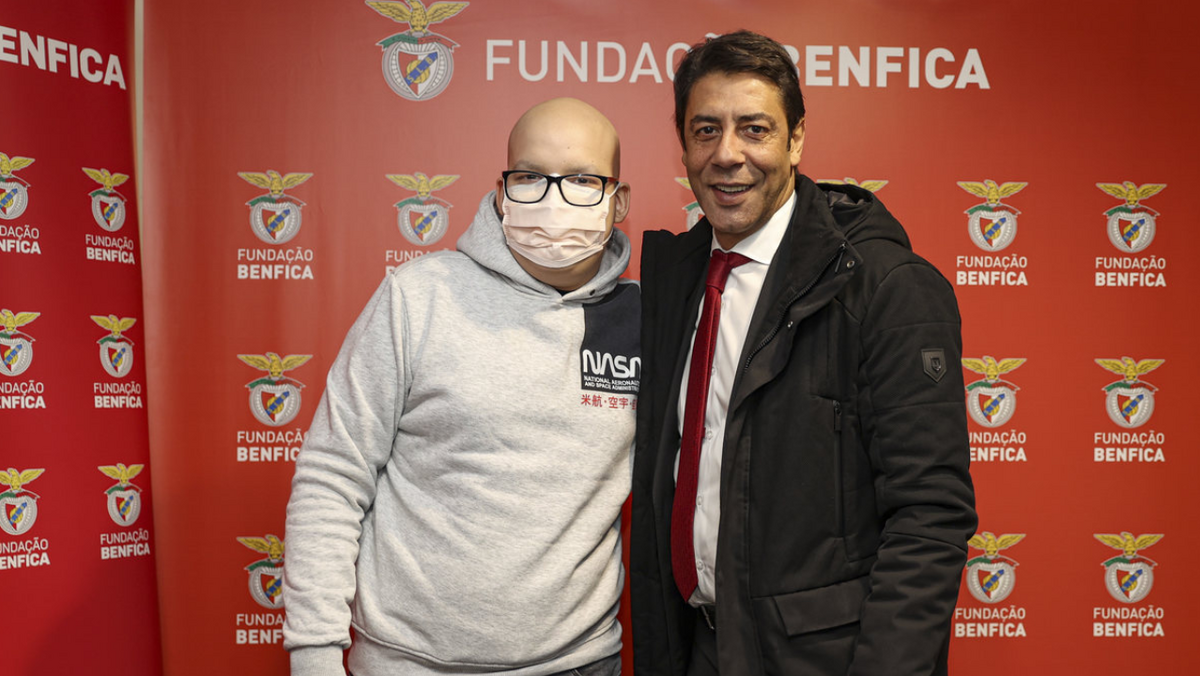 Flávio teve um dia diferente na Luz e realizou um sonho: conheceu os jogadores do Benfica e esteve com Rui Costa