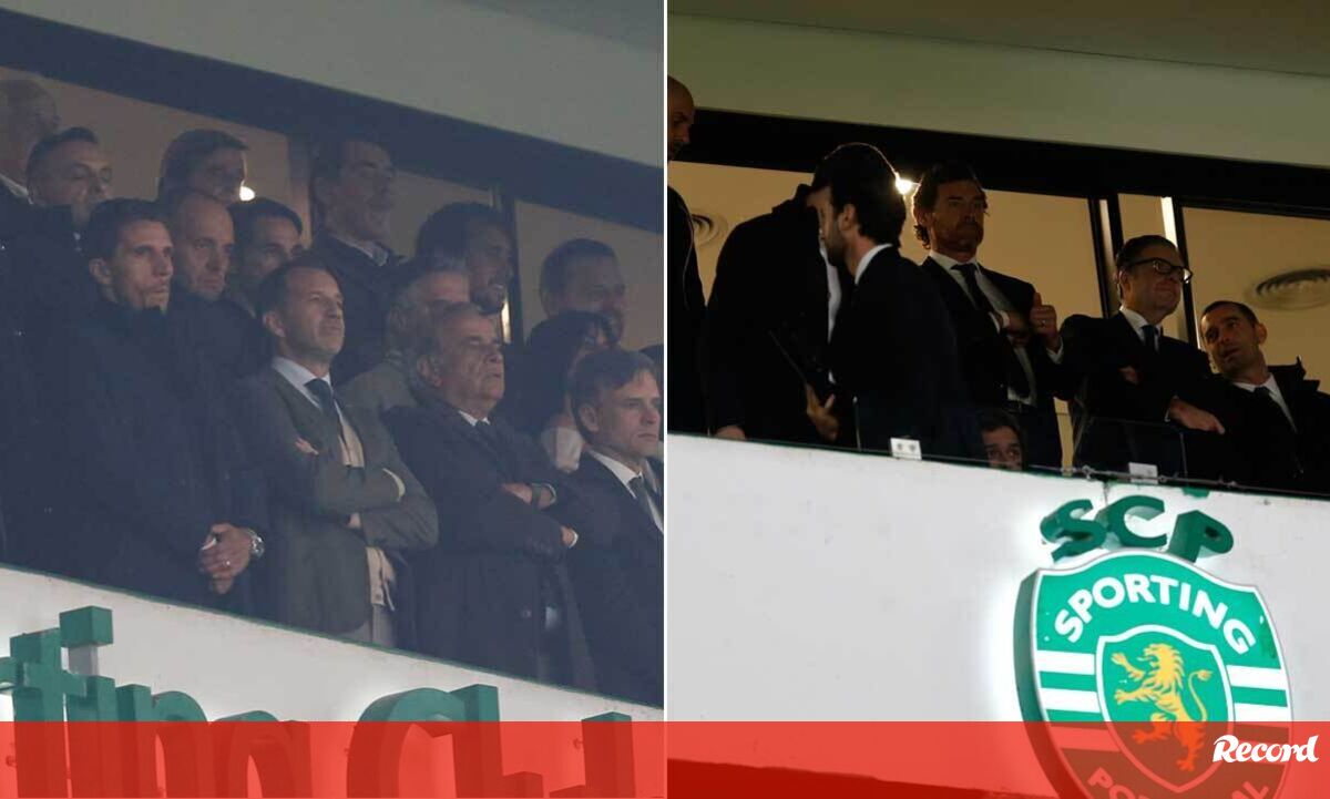 Frederico Varandas e Villas-Boas longe um do outro na tribuna durante o Sporting-FC Porto