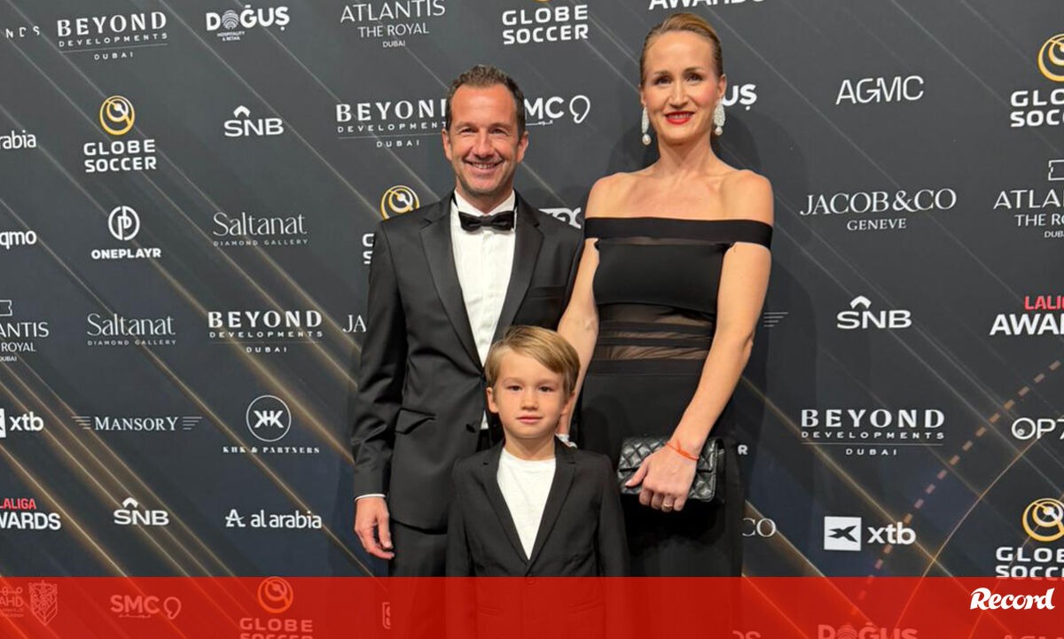 Frederico Varandas, presidente do Sporting, marcou este domingo presença nos Globe Soccer Awards com a família, pelo que não conseguiu ver presencialmente a goleada dos leões ao Rio Ave, em Alvalade (4-0). Nesta fotografia, o líder dos verdes e brancos aparece acompanhado da mulher Katarina Larsson e do filho Santiago.