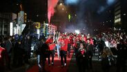 Gedson deu banhos, Svilar impressionado e Jonas animador: como os benfiquistas festejaram no Marquês