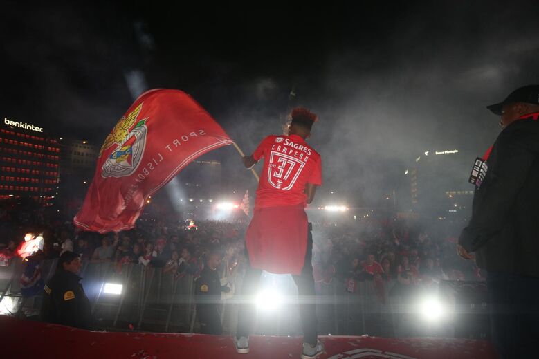 Gedson, Svilar ou Jonas foram alguns dos elementos mais animados na festa do 37 do Benfica. Veja as imagens das celebrações no Marquês de Pombal. [Fotos: Vítor Chi]