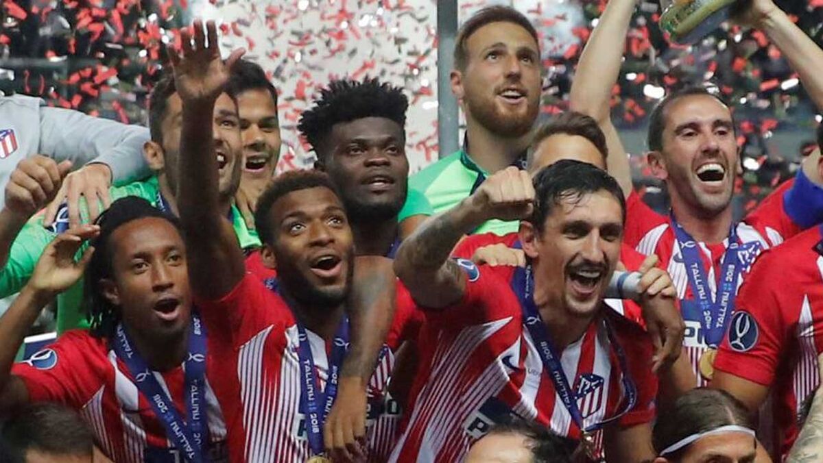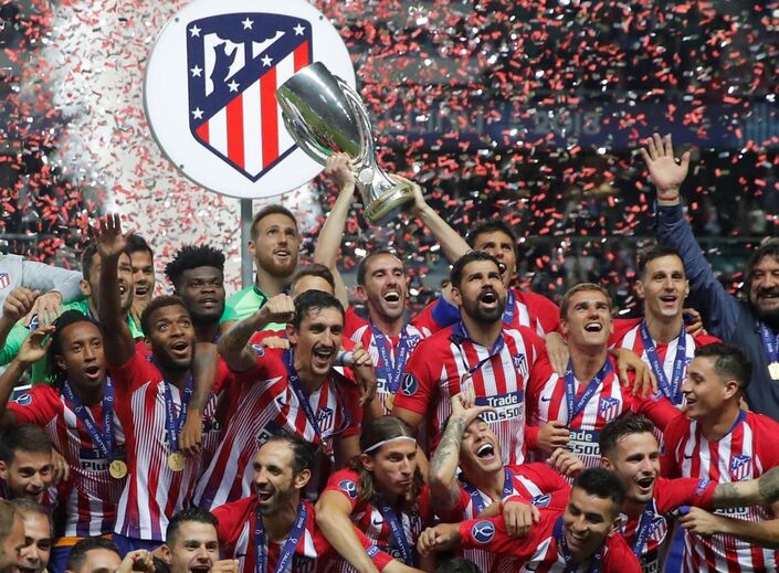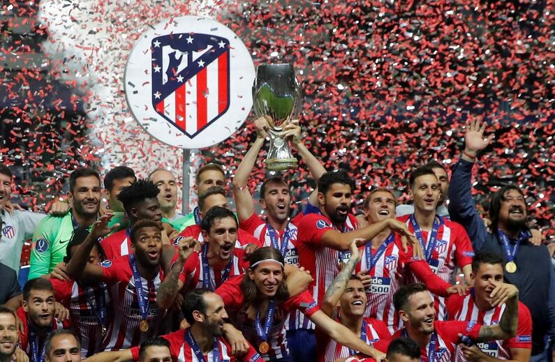 Gelson Martins não saiu do banco na Supertaça Europeia mas, após o apito final, também celebrou com os colegas do Atlético Madrid a vitória (4-2) sobre o Real Madrid e a conquista da prova. [Fotos: Reuters e EPA]