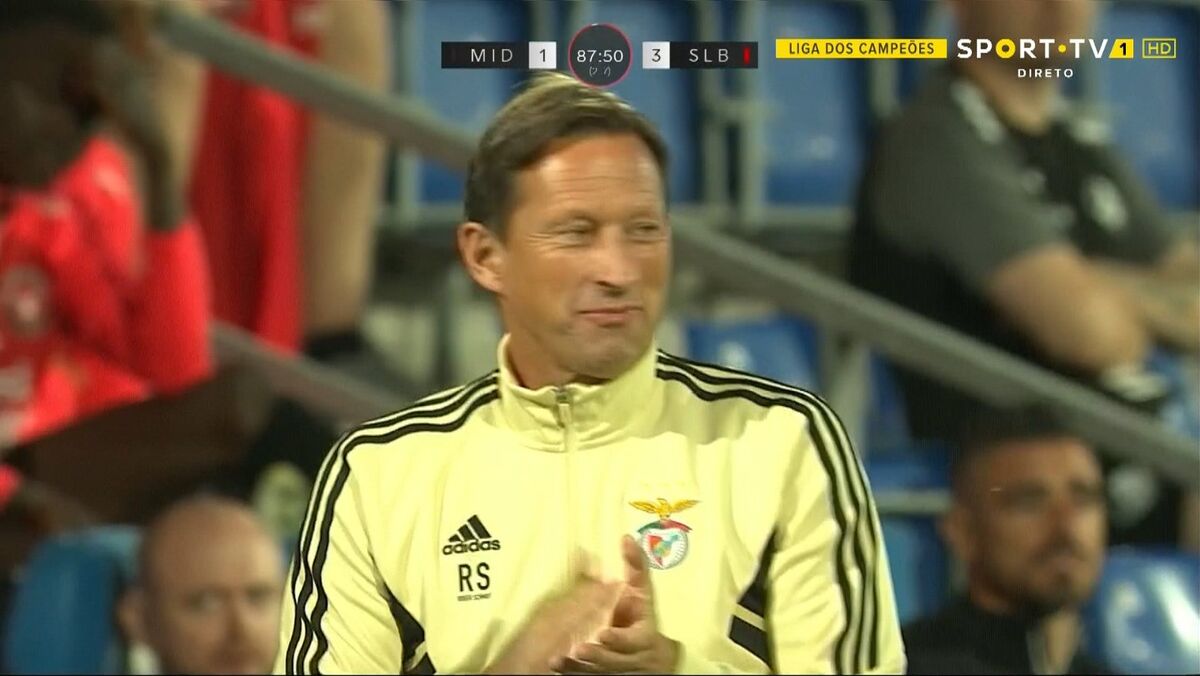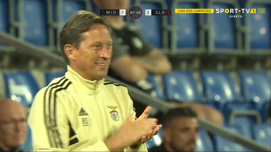 Não é normal Roger Schmidt expressar um sorriso, mas esta terça-feira, na fase final do jogo com o Midtjylland, fez uma exceção. Tudo por causa do incrível momento de inspiração de Diogo Gonçalves.