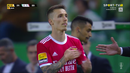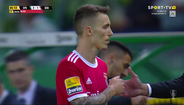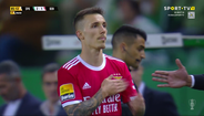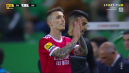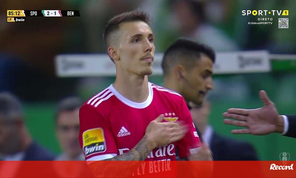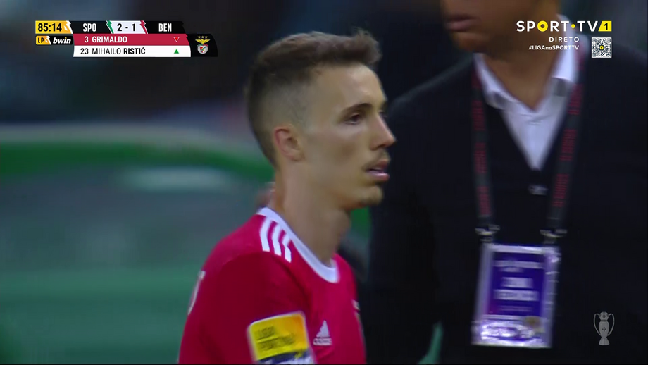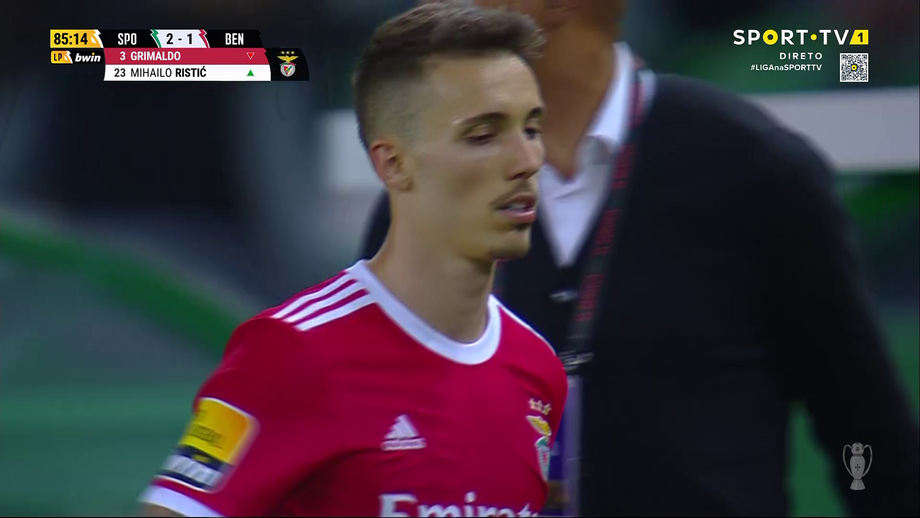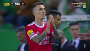 Alejandro Grimaldo foi substituído por Ristic no dérbi de Alvalade e, à saída, agradeceu aos adeptos do Benfica e bateu no símbolo do clube da Luz. O espanhol, como se sabe, está de saída para o Bayer Leverkusen.
