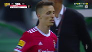 Grimaldo foi substituído e bateu com a mão no símbolo do Benfica