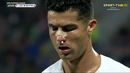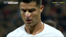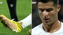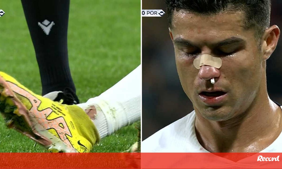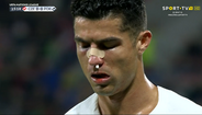 Pisadela no tornozelo e depois pancada no nariz: Cristiano Ronaldo a sangrar após estes lances