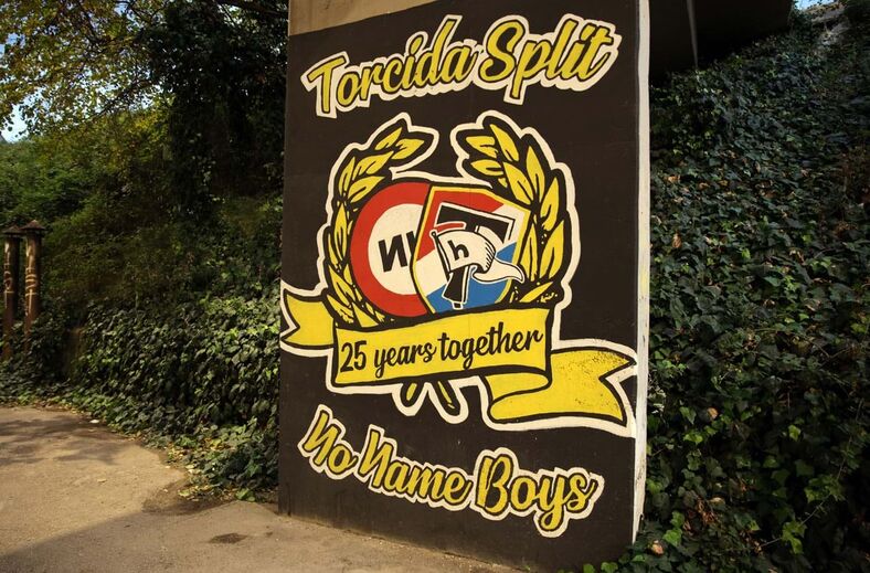 O Estádio Poljud, casa do Hajduk Split, será o palco onde a Seleção Nacional irá jogar esta segunda-feira, diante da Croácia (19H45). No entanto, a presença da comitiva de Portugal não é o único elo a ligar o futebol português à cidade de Split por estes dias. Há, na verdade, uma ligação permanente que é visível nas imediações do recinto, onde existem registos... do Benfica. A Torcida, claque do Hajduk Split, é muito próxima dos No Name Boys, grupo de adeptos das águias, e essa relação de amizade está gravada nas paredes exteriores [Fotos José Gageiro/Movephoto]