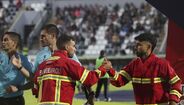 Homenagem especial: capitães Bruno Varela e Diogo Costa entraram em campo vestidos de bombeiros