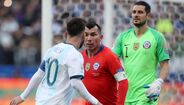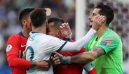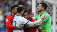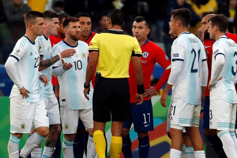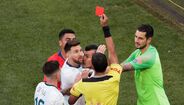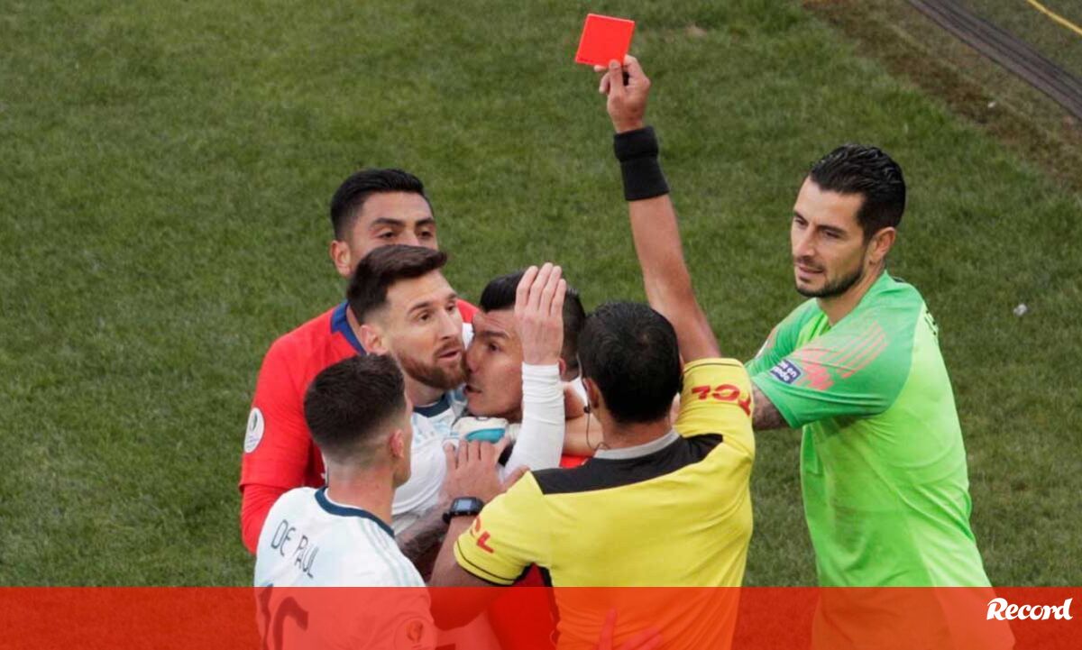 Lionel Messi nem queria acreditar quando viu o árbitro do Argentina-Chile, da Copa América, mostrar-lhe o vermelho direto por desentendimento com Gary Medel - que foi igualmente expulso. O capitão da alviceleste ficou de olhos esbugalhados a olhar para o cartão e recebeu apoio de Arturo Vidal. [Fotos: Reuters e EPA]