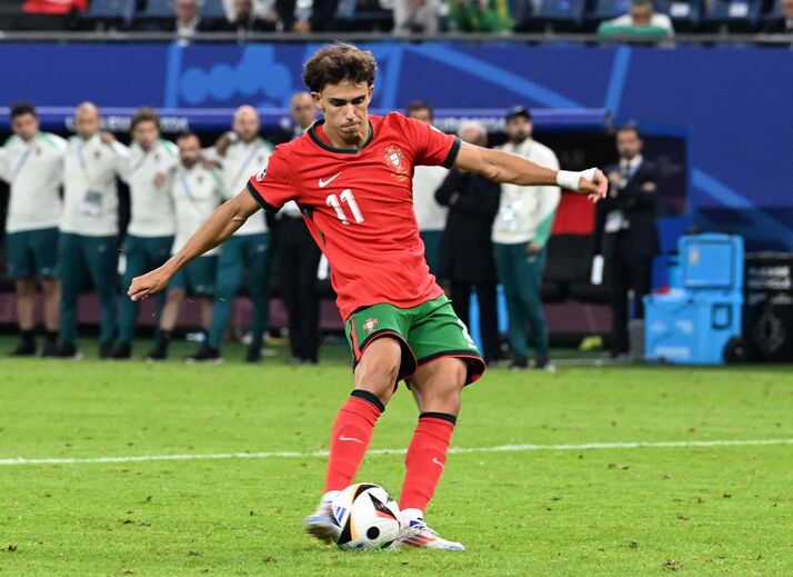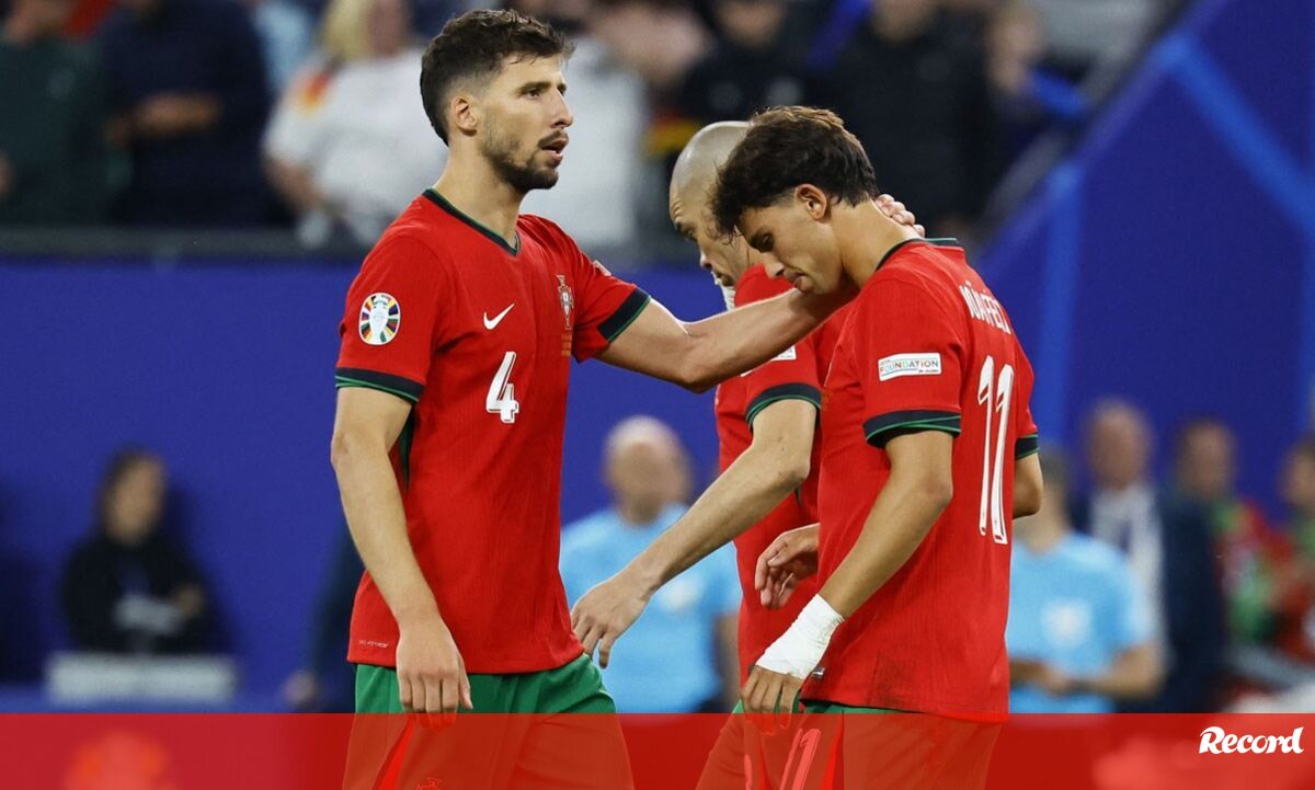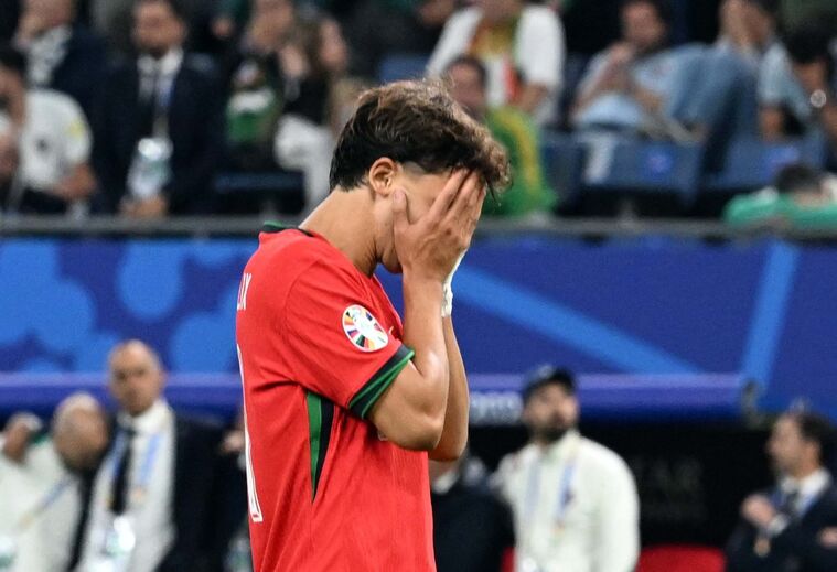 Pepe e Rúben Dias foram os primeiros a deixarem o centro do relvado para confortarem João Félix, que acabou por falhar a sua tentativa no desempate por penáltis frente à França, momento esse que ditou a eliminação de Portugal do Campeonato da Europa. De resto, o avançado de 24 anos, naturalmente cabisbaixo, recebeu o apoio de vários colegas.