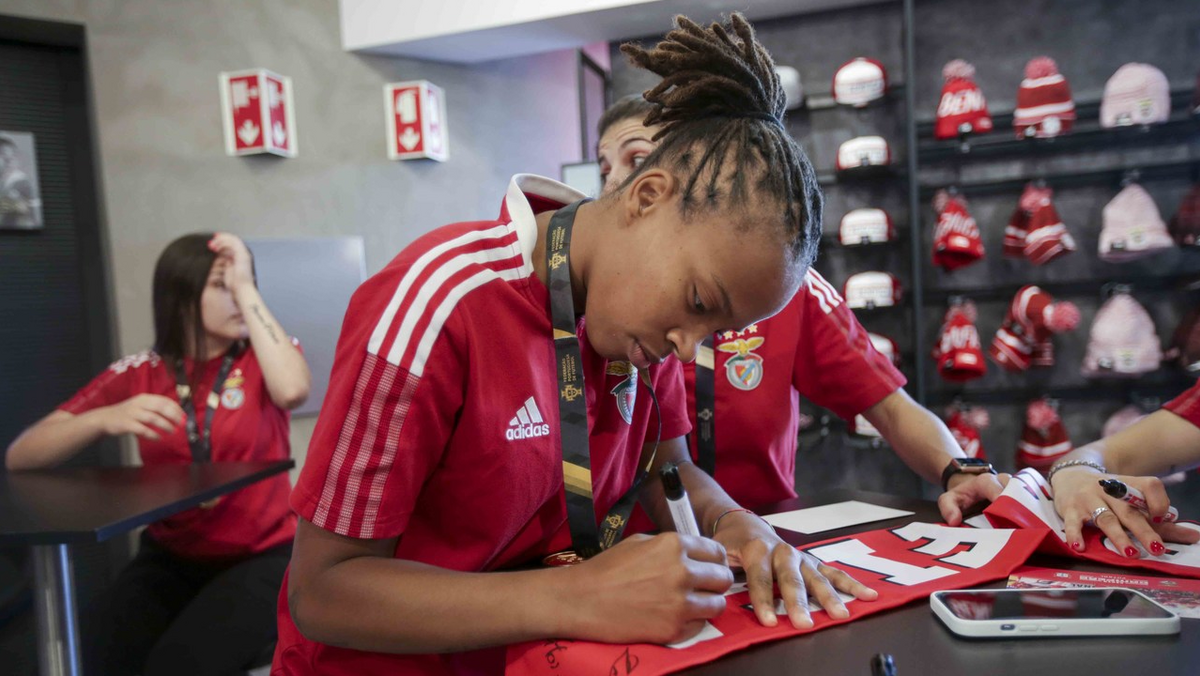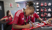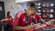 Jogadoras da equipa feminina de futsal do Benfica distribuíram autógrafos na Luz