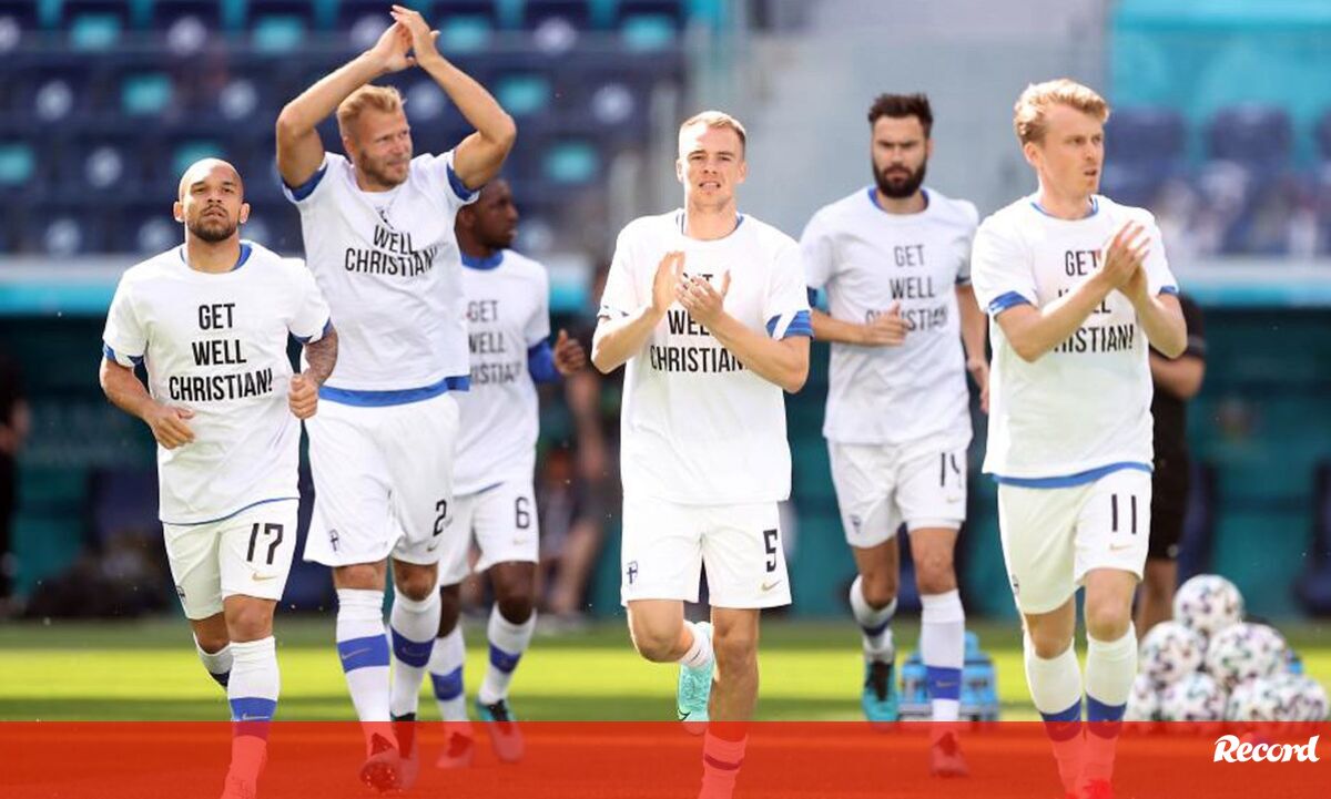 Os jogadores da Finlândia presenciaram momentos dramáticos no duelo com a Dinamarca após a queda súbita de Christian Eriksen em pleno relvado. Esta quarta-feira, antes do jogo com a Rússia, os finlandeses entraram em campo para os exercícios de aquecimento com t-shirts a desejar uma rápida recuperação ao médio de 29 anos. "Fica bem Christian", podia ler-se. [Imagens: Lusa/EPA]