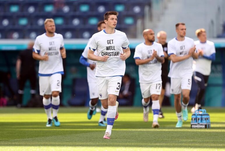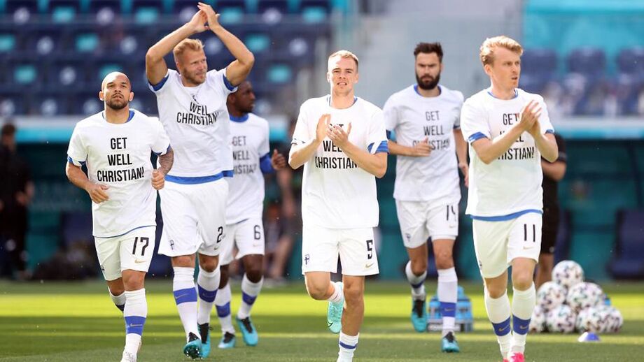 Jogadores da Finlândia deram força a Christian Eriksen antes do jogo com a Rússia