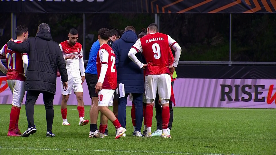 O Sp. Braga fez o que lhe competia esta noite, venceu a Lazio, líder da fase regular da Liga Europa, mas mesmo assim não conseguiu confirmar o apuramento para o playoff da prova europeia. No final da partida, os jogadores juntaram-se no relvado e, com um telemóvel no centro da roda, seguiram os minutos finais dos restantes jogos que ainda podiam influenciar com a classificação final. [Frames: DAZN1]