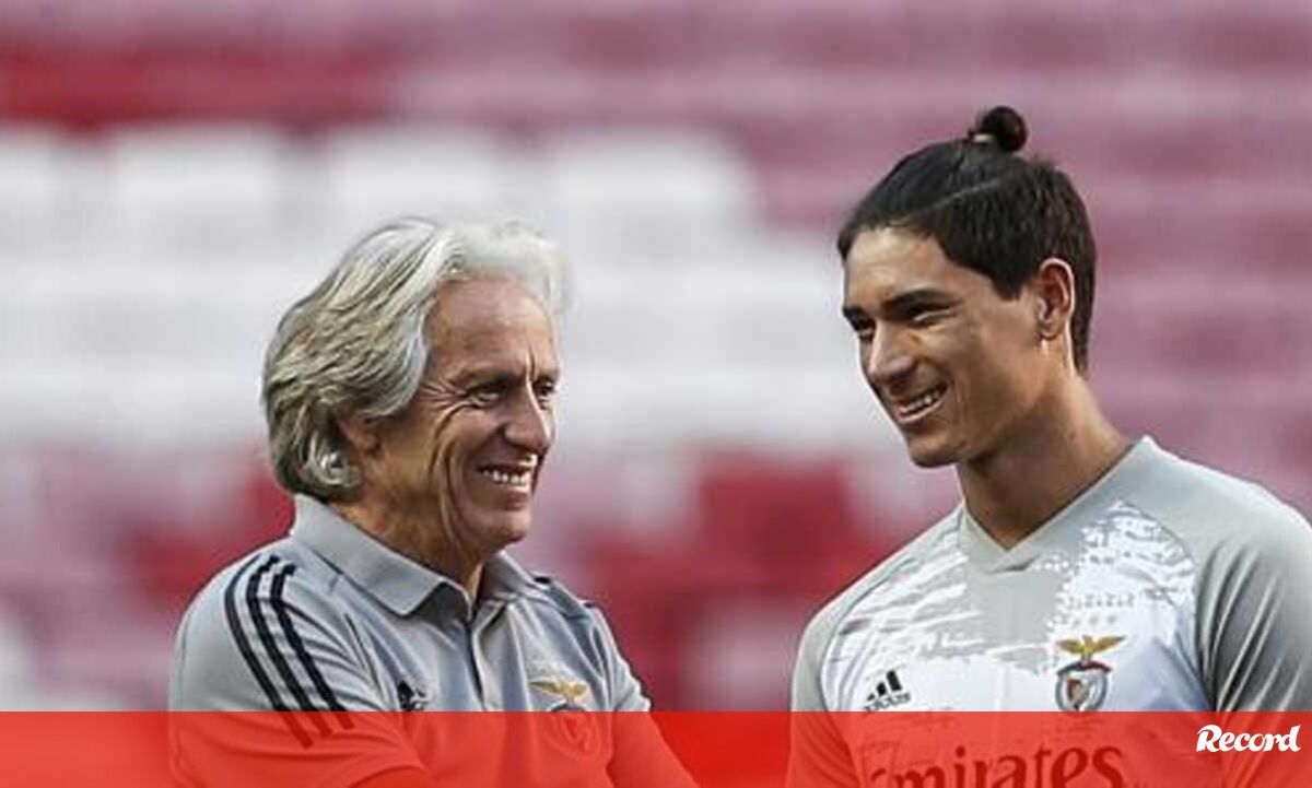 Jorge Jesus em conversa animada com Darwin antes do Benfica-Rennes