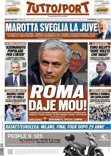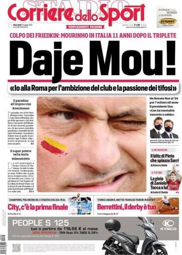 A contratação de José Mourinho por parte da Roma merece esta manhã grande destaque nas primeiras páginas dos jornais desportivos italianos.