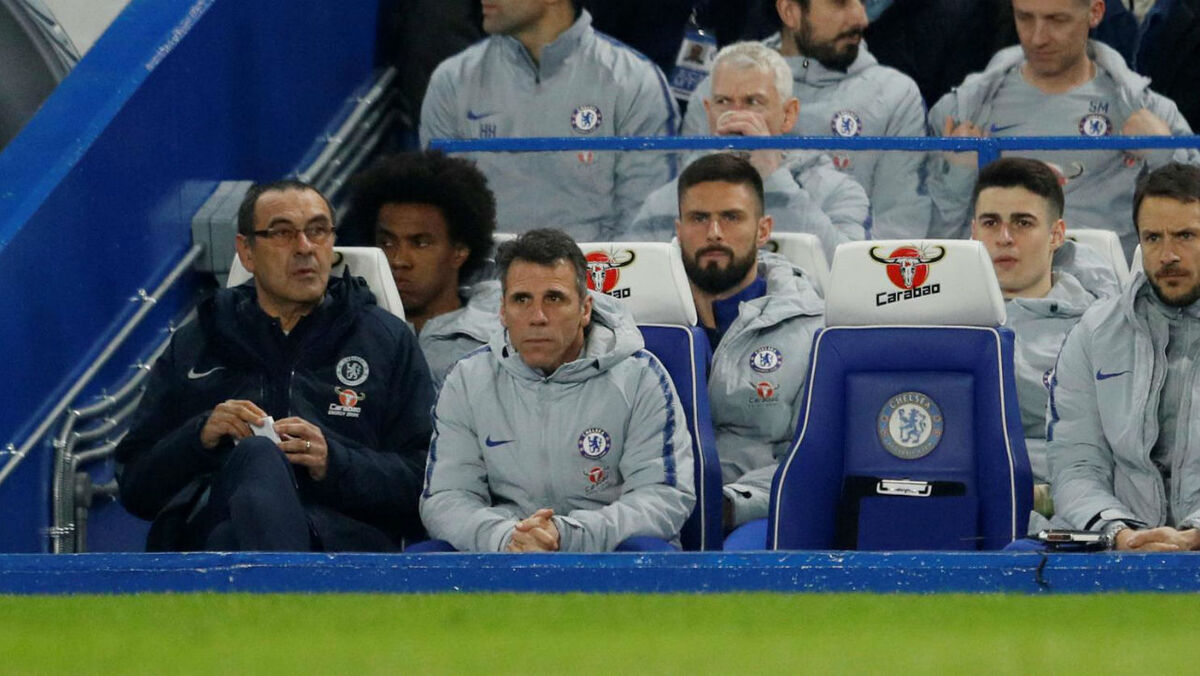 Um jogo bem diferente para Kepa: agora foi mesmo para o banco e quase ao lado de Sarri