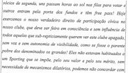 O documento que descreve a AG destitutiva de Bruno de Carvalho tem data de 23 de julho, um mês após os factos. A ata é composta por 110 páginas mas a versão a que Record teve acesso omite duas (a 64 e a 66), no segmento dedicado à reprodução das intervenções dos sócios. No capítulo dos fundamentos da justa causa pode ler-se tudo o que levou à queda da ex-direção do Sporting, de Madrid ao ataque à Academia e às rescisões. O advogado de BdC, José Preto, chegou a denunciar a alegada existência de uma segunda ata desta AG.