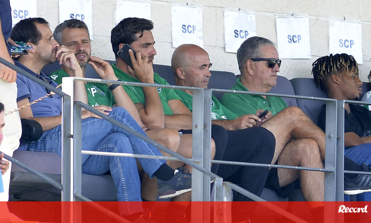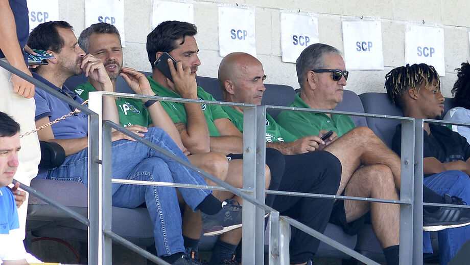 Leonel Pontes e Bruno Fernandes acompanham jogo do Sporting na Liga Revelação
