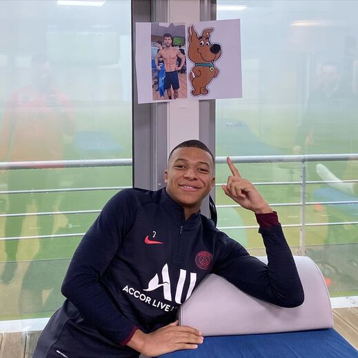 Kylian Mbappé partilhou uma imagem de Juan Bernat a treinar no ginásio e comparou-o ao Scooby-Doo. Muitos jogadores do PSG - casos de Neymar, Verrari, Di María e Ander Herrera - não tardaram a responder com emojis de grandes risadas. Bernart também reagiu com humor à brincadeira do companheiro francês.