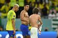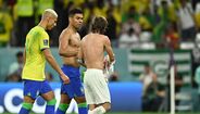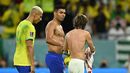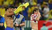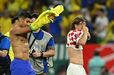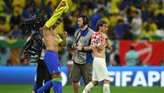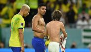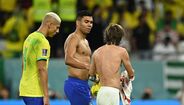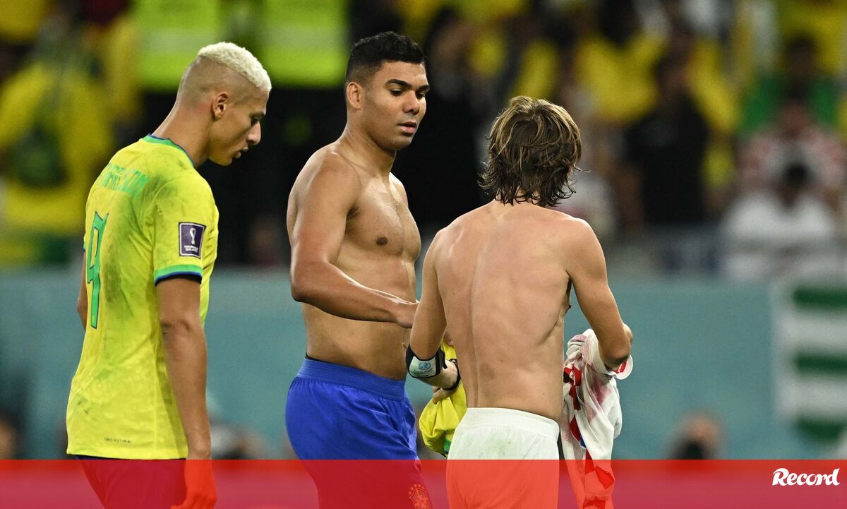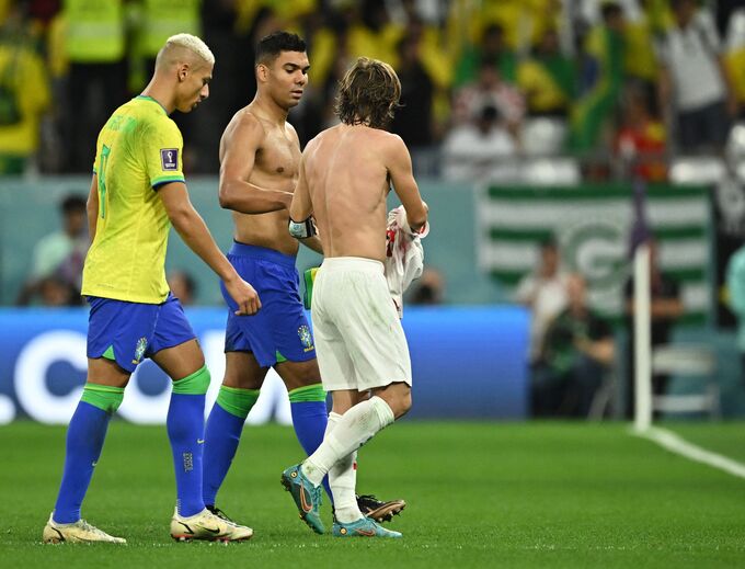 Casemiro e Modric reencontraram-se esta sexta-feira nos relvados, no Croácia-Brasil, a primeira vez enquanto adversários depois de muitos anos juntos ao serviço do Real Madrid. Ora, os dois médios não perderam tempo e trocaram logo as camisolas ao intervalo, uma lembrança para ambos mais tarde recordarem. Refira-se que Casemiro trocou os merengues pelo Manchester United em agosto deste ano. (Imagens: Reuters)