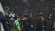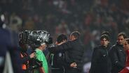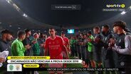 Já após o apito final da Allianz Cup, que o Benfica conquistou nos penáltis frente ao Sporting (1-1, 6-7), as duas equipas protagonizaram, através das guardas de honra, um momento de fairplay. Pelo meio, vários jogadores das duas equipas trocaram cumprimentos. Bruno Lage acabou a consolar Francisco Trincão, que falhou o pontapé decisivo dos leões. (Imagens: Frames/Sport TV e Pedro Ferreira)