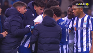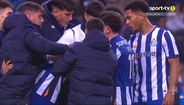 De joelhos no relvado e totalmente desolado após desperdiçar dois penáltis frente ao Santa Clara (1-1), Wanderson Galeno foi reconfortado pelos companheiros de equipa no final do encontro no Dragão, com José Ferreirinha Tavares a juntar-se ao grupo que procurou motivar o avançado brasileiro. [Frames: Sport TV]