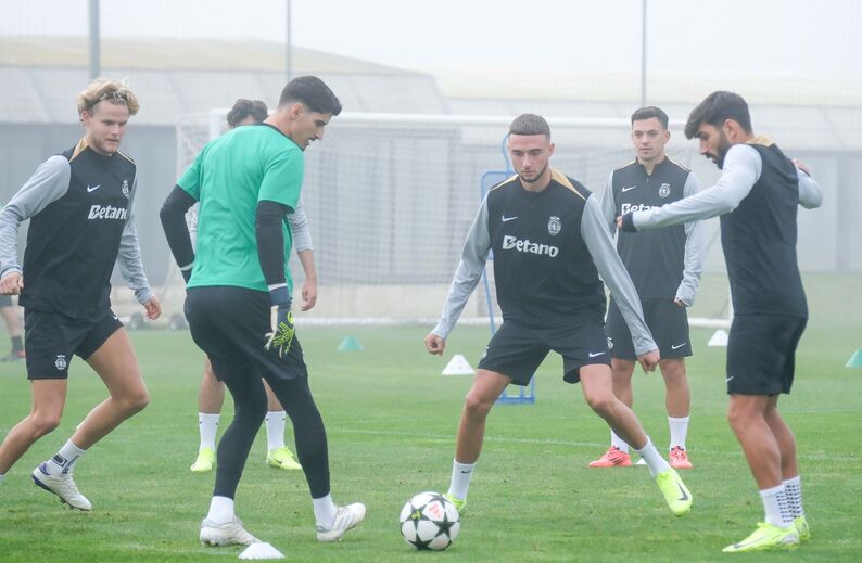 Morita 'apanha' o fotógrafo e Trincão 'dá boleia' a Franco Israel: as imagens do treino do Sporting na véspera da Champions