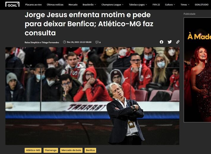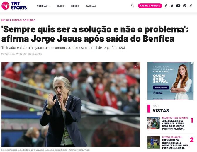 «Motim e escândalo no Benfica»: imprensa internacional reage à saída de Jorge Jesus