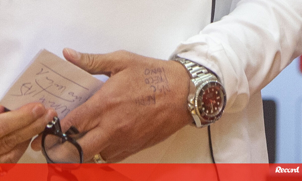 José Mourinho apresentou-se este domingo com apontamentos num caderno e também na mão esquerda durante a antevisão ao Gil Vicente-Benfica. Aparentemente, o técnico tem escrito na mão as seguintes abreviaturas: 'Repu', 'Disc', 'Preco', 'Igno', ou seja, de repudio, discriminação, preconceito e ignorância, quatro ideias que o treinador do Benfica deixou na intervenção sobre o caso Vini-Prestianni. Eis a declaração de Mourinho na conferência de imprensa. "Enquanto cidadão, repudio veementemente qualquer tipo de discriminação, qualquer tipo de preconceito e qualquer tipo de ignorância."
