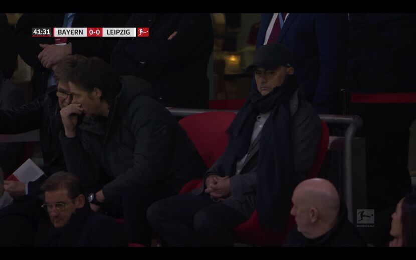 José Mourinho foi presença notada este domingo no duelo entre Bayern Munique e RB Leipzig e nem mesmo a sua tentativa de passar despercebido serviu para escapar à 'deteção' da transmissão televisiva. O técnico português do Tottenham, refira-se, foi à Alemanha seguir o seu próximo adversário da Champions, o Leizpig.