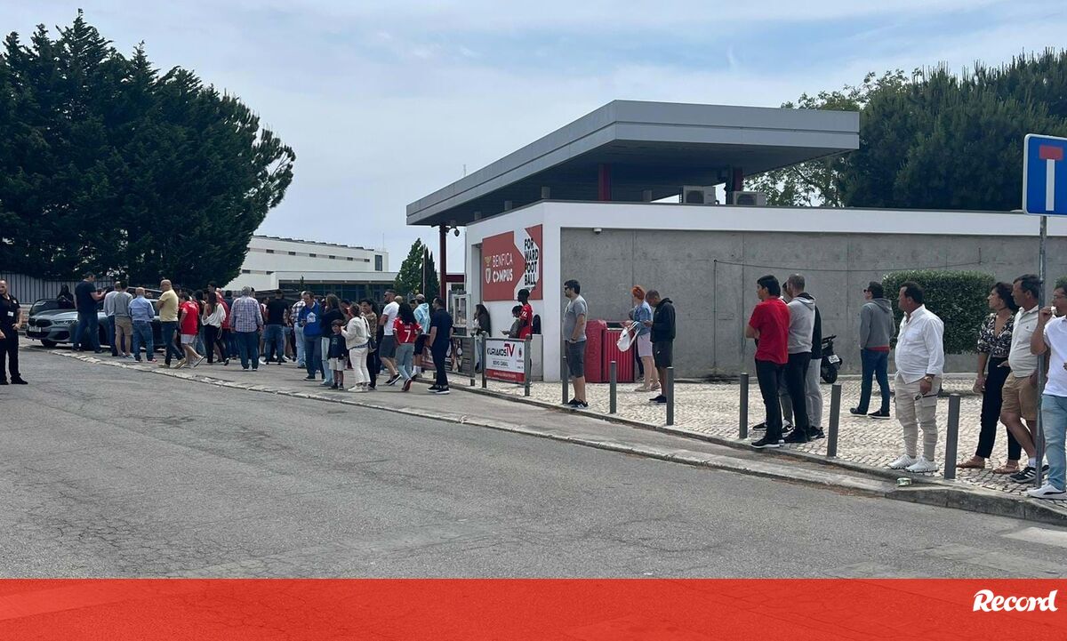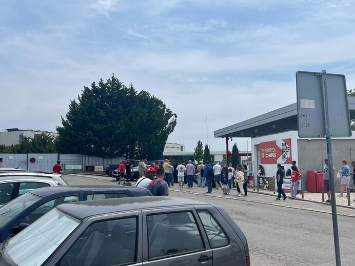 Muito apoio à porta do Seixal: dezenas de adeptos aguardam saída do Benfica na véspera do dérbi