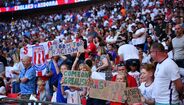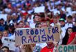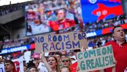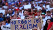 «Não há espaço para o racismo»: adeptos ingleses mostram cartazes de apoio à Seleção