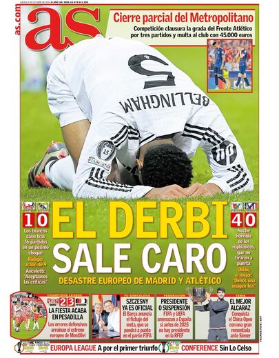 "Noite negra" e o "dérbi sai caro": as primeiras páginas dos jornais espanhóis
