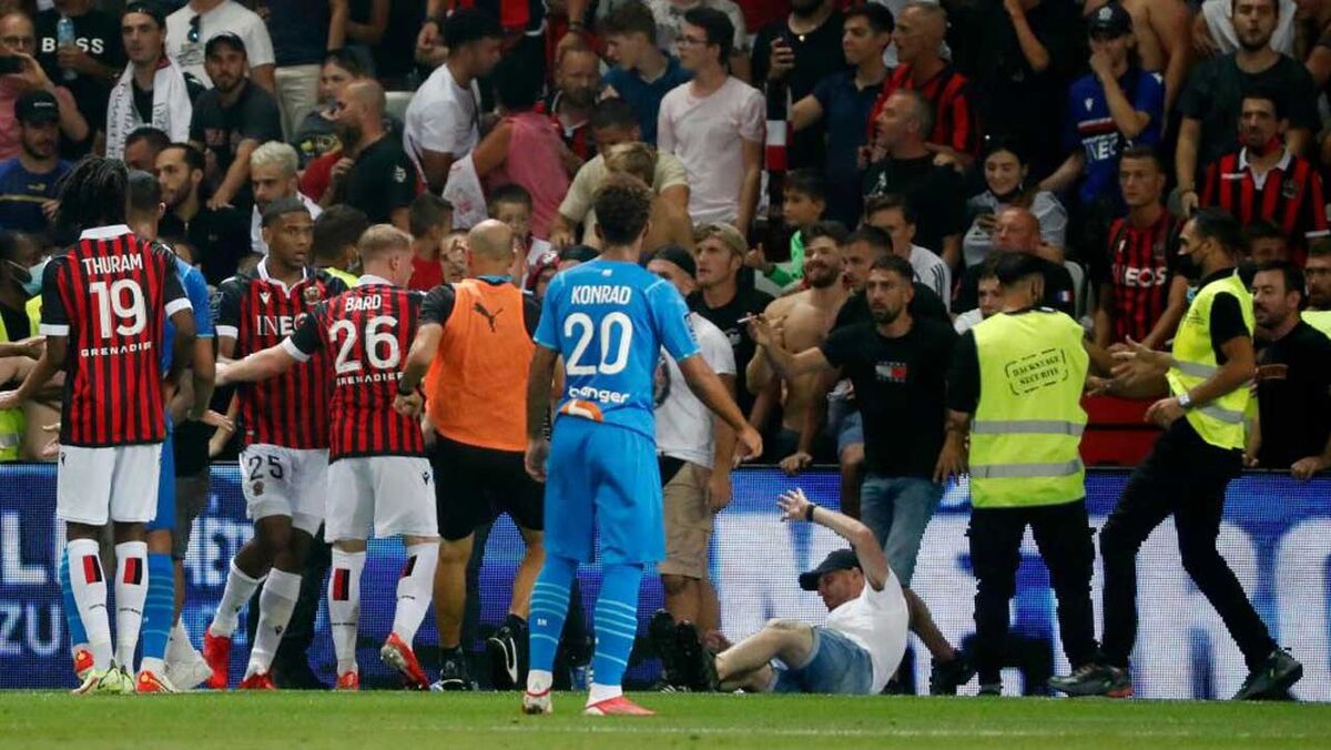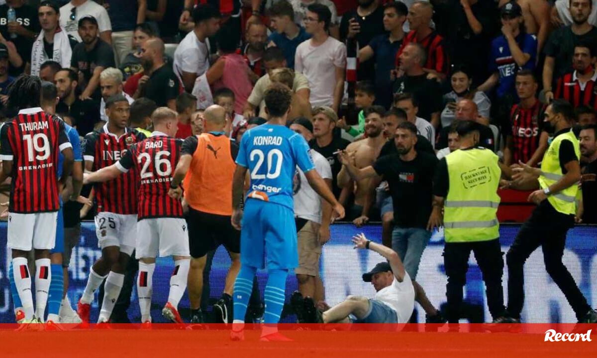 Novas imagens da invasão de campo no Nice-Marselha: foi o descontrolo total