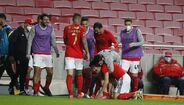 O abraço emotivo entre Rui Costa e Pizzi após o segundo golo do Benfica