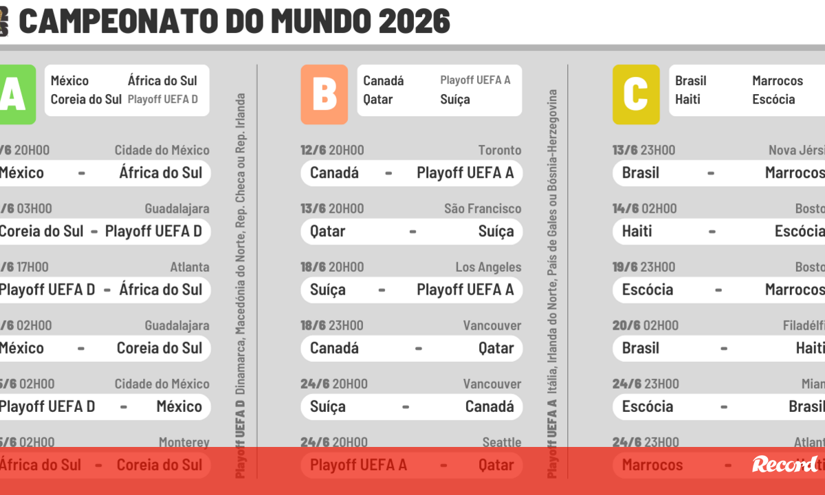 O calendário completo da fase de grupos do Mundial'2026