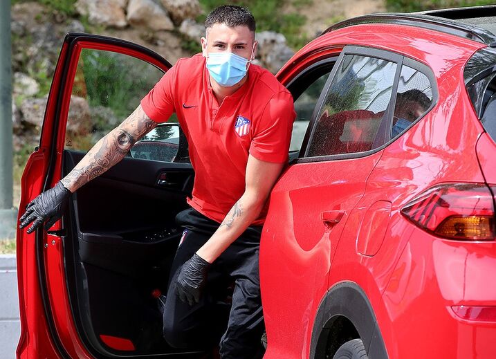 Os jogadores do Atlético Madrid regressaram esta quarta-feira ao centro de treinos do clube espanhol, para os testes à covid-19, antes de retomarem os treinos. E claro está, todos se apresentaram com as proteções exigidas: máscaras e luvas.