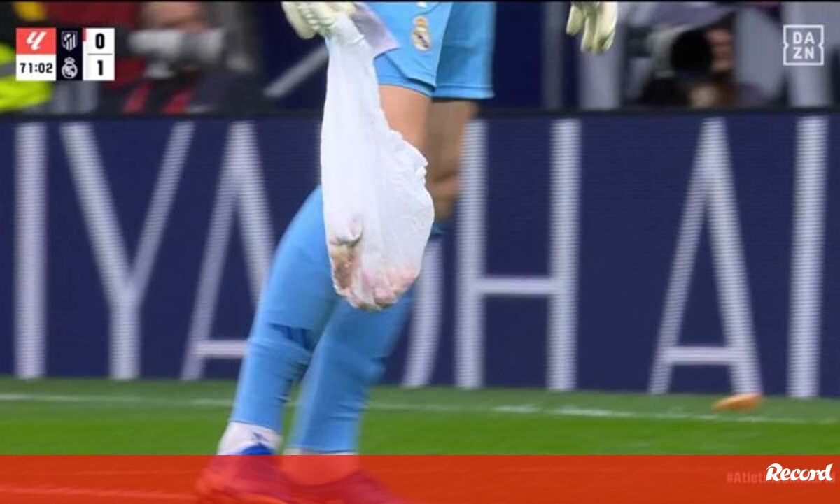 Objetos atirados contra Courtois (incluindo saco com conteúdo desconhecido...) interrompem At. Madrid-Real Madrid