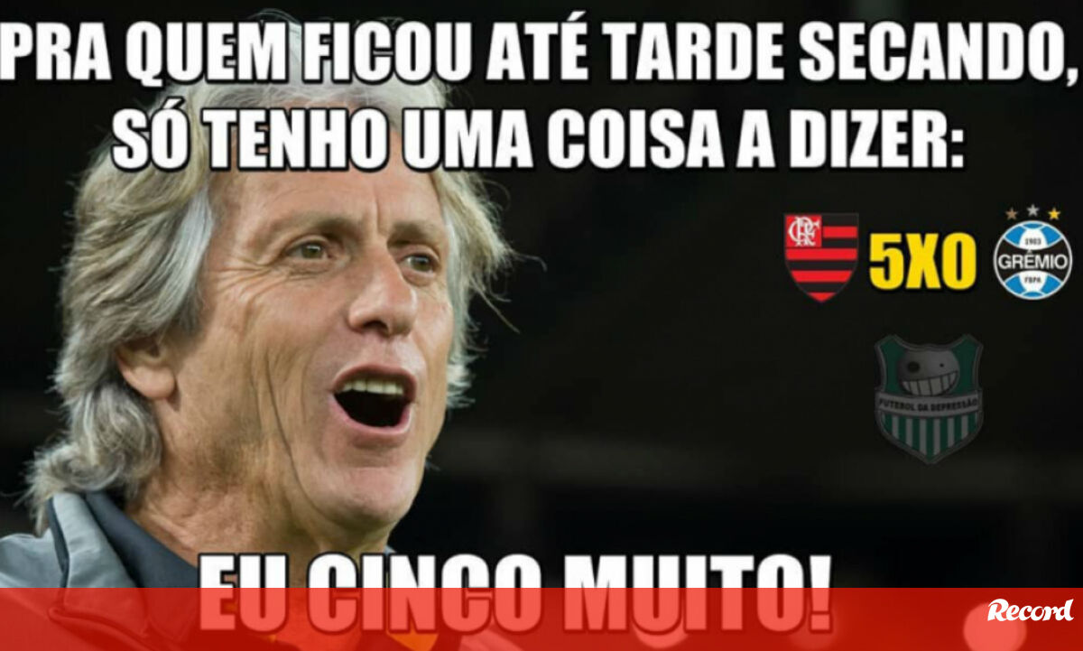 A goleada do Flamengo de Jorge Jesus ao Grémio, na segunda mão da meia-final da Taça Libertadores, foi um prato cheio para quem gosta de memes. Renato Gaúcho tinha dito que a sua equipa praticava o melhor futebol do Brasil e a internet não perdoou... (Fonte Lance, Humor Esportivo e Twitter)