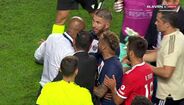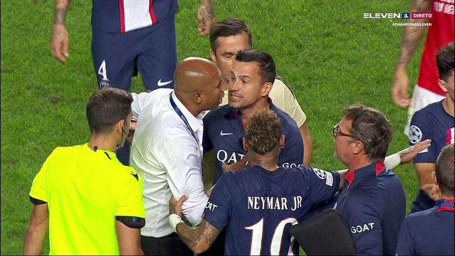 O ambiente aqueceu no relvado logo após o apito final no Benfica-PSG (1-1). Primeiro entre António Silva e Donnarumma, que não gostou do agarrão do jovem central, e, mais tarde, com Neymar e um elemento do staff encarnado, mas também Luisão e Hakimi, que ficaram frente a frente e tiveram de ser separados. O diretor técnico das águias tentou depois acalmar o internacional brasileiro.