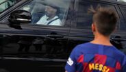 Os jogadores do Barcelona compareceram este domingo em Camp Nou, para a realização dos testes à covid-19 e assim dar início à nova época... mas de Messi só mesmo a camisola. [Fotos: Reuters e Barcelona]