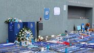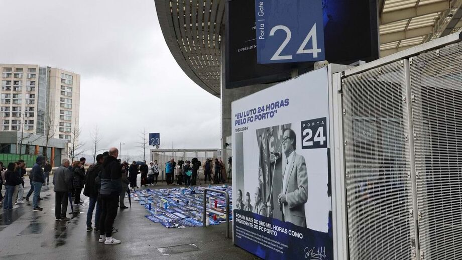 São várias as portas no Estádio do Dragão que esta manhã ganharam nova 'roupagem' em homenagem a Pinto da Costa: em cada uma delas há agora uma foto com factos ou números da história do FC Porto e do ex-presidente dos dragões que faleceu ontem aos 87 anos.